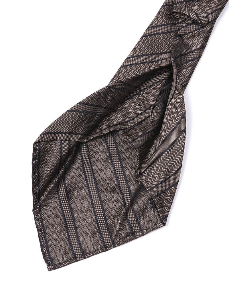 Atto Vannucci(アット ヴァンヌッチ)を制作する工房は、セブンフォルド社が2011年に始業しました。 昨今、絶滅の危機であった工芸品ともいえる手縫いのネクタイの愛用者達に末永く提供し続けたいという願いのもと、昔ながらの手法で制作しつづけます。 vannucci(アットヴァンヌッチ)の代名詞である7つ折りのオリジナルネクタイ「Sette Pieghe(セッテピエゲ)」はスカーフのような柔らかく、上品な佇まいが魅力です。 伝統を継承しながらも、新たな時代を切り開くセンスを併せ持ち、現代のインスピレーションを取り入れた最高級生地をセレクトし、すべてを手作業で仕上げた唯一無二のネクタイブランドです。