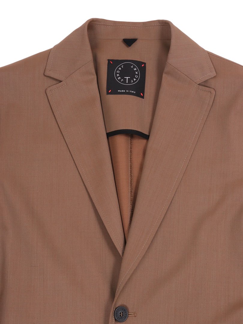 家庭用洗濯機で水洗いが可能なストレッチ入りのウールポリエステル素材を使用したノッチドラペルの2Bジャケットです。 ブランドネームの刻印入りのオリジナルボタン。背抜き仕立て。ノーベント。袖筒。スリムフィット。※ランドリーバッグが付属します。