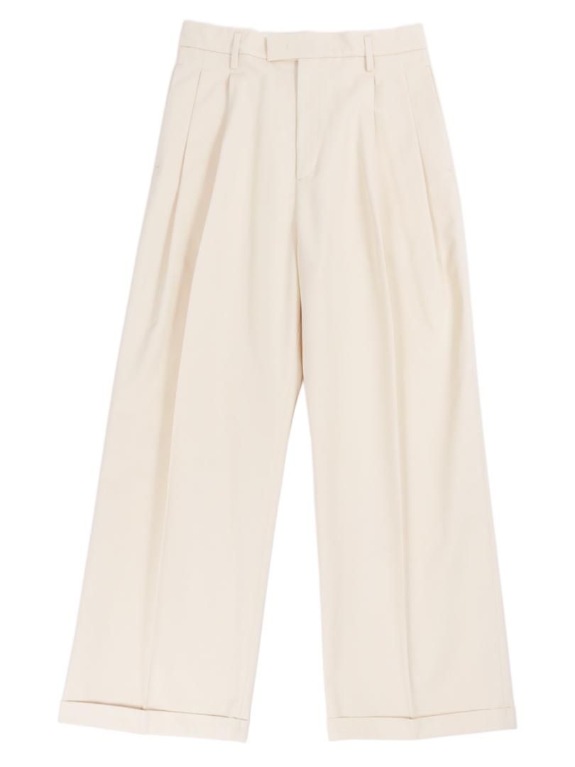 ハリのあるコットンツイル地を使用したワイドパンツです。
