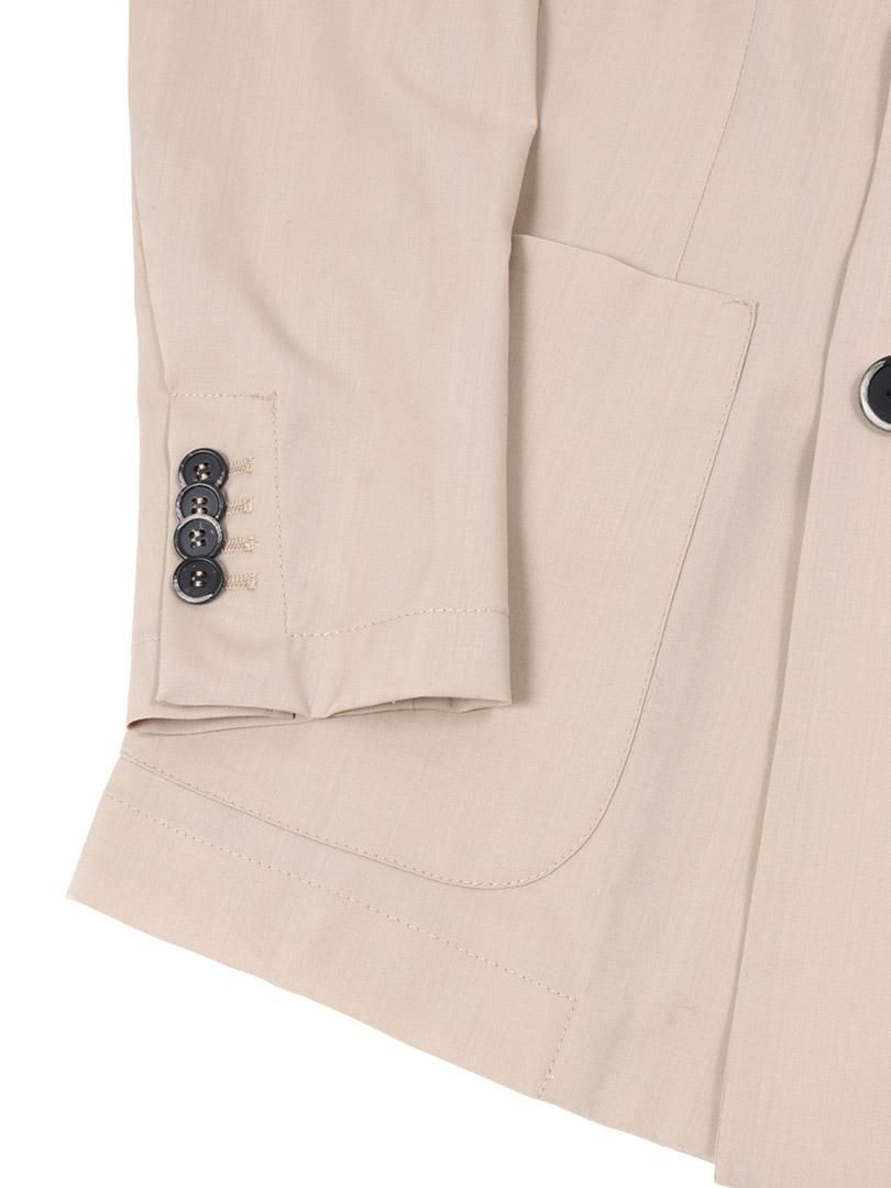 バージンウールを紡いだシワになりにくいトロピカル地を使用したダブルジャケットです。袖口開き見せ。サイドベンツ。ウェルトポケット。ウエストパッチポケット。