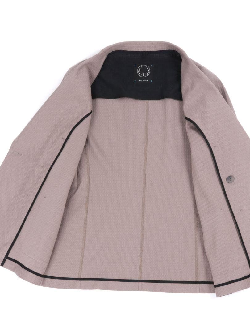【 商品コメント 】 コットン100%のメッシュ素材を使用したダブルジャケットです。 ブランドネームの刻印入りのオリジナルボタン。背抜き仕立て。ノーベント。袖筒。スリムフィット。