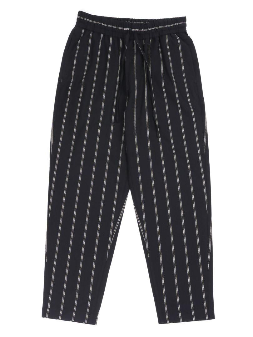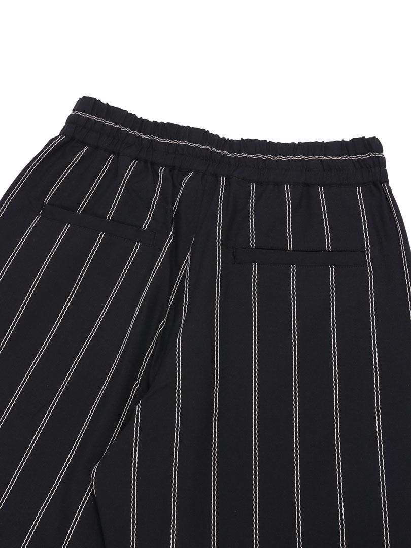 刺繍によりストライプを表現したコットンシルク地を使用したイージーパンツです。