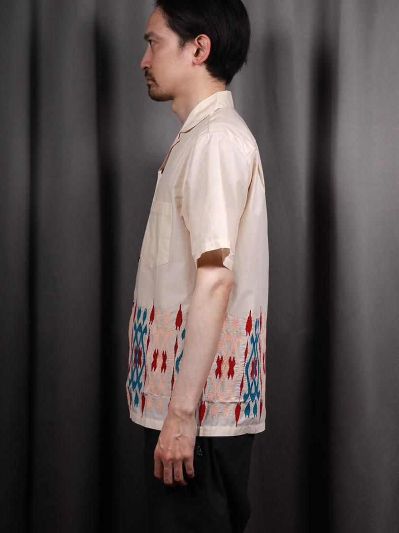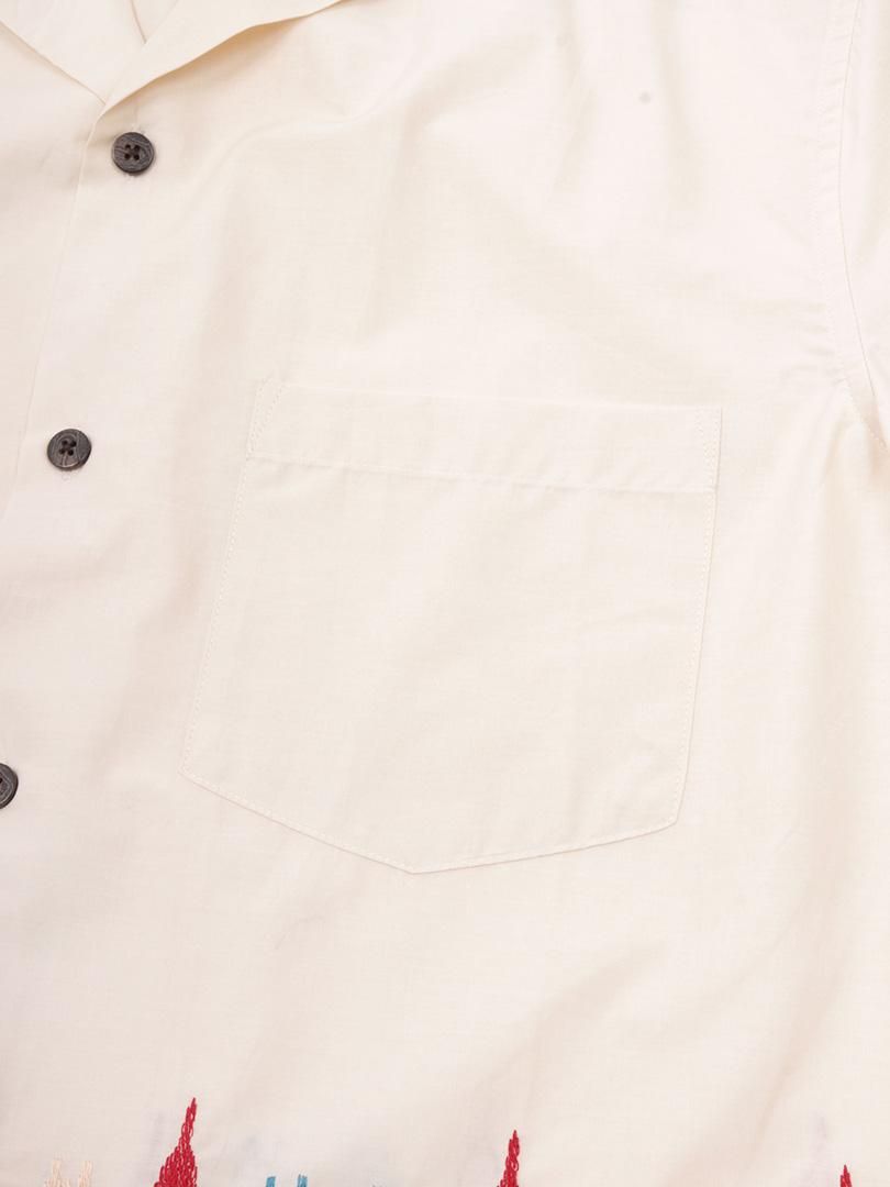 コットンポプリン地のオープンカラーシャツです。