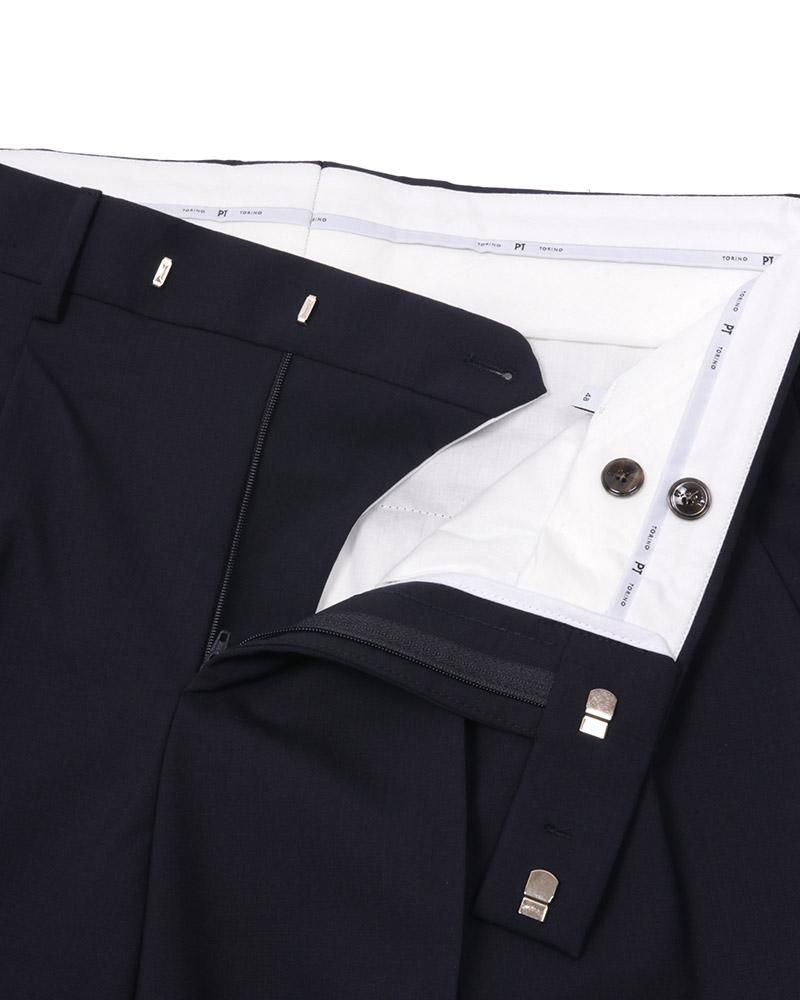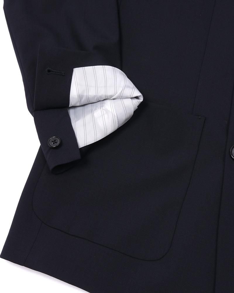 【 商品コメント 】 ストレッチコーデュラプレーンウィーブを使用したダブルジャケットと2プリーツパンツのセットアップスーツです。 ジャケット:ノッチドラペル。比翼本切羽。センターベント。 パンツ:2プリーツ。フロントファスナー仕様。
