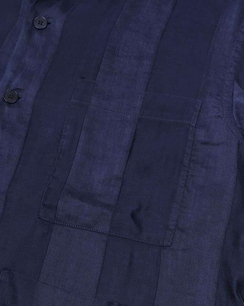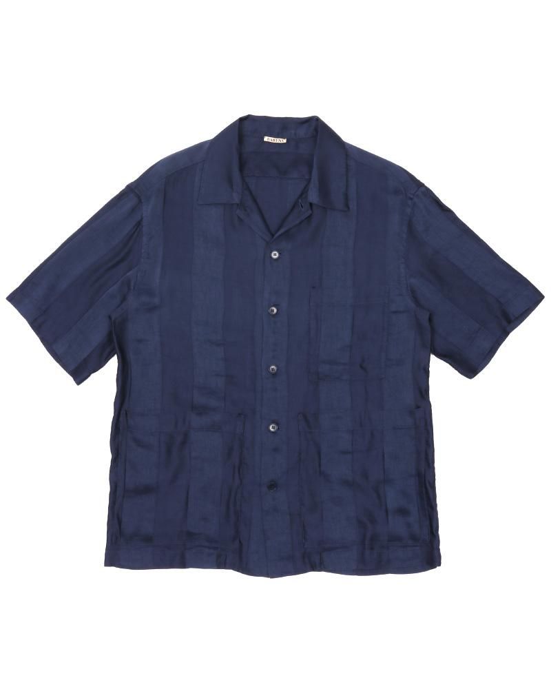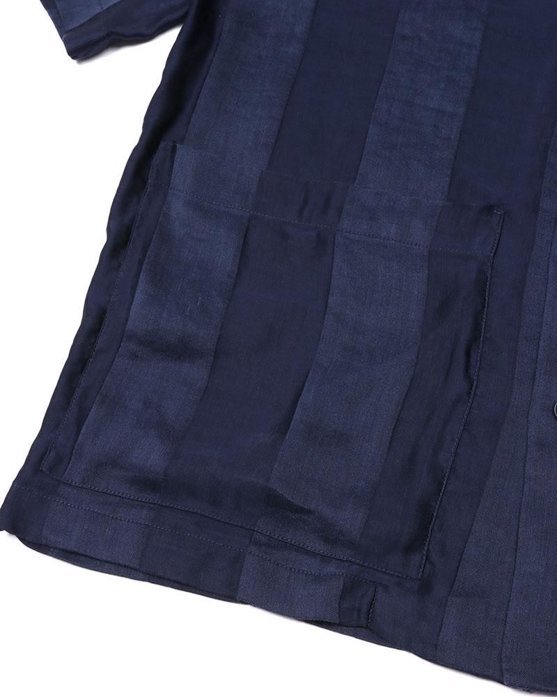 リネンレーヨン混紡のサテンストライプ地を使用したオーバーシャツです。