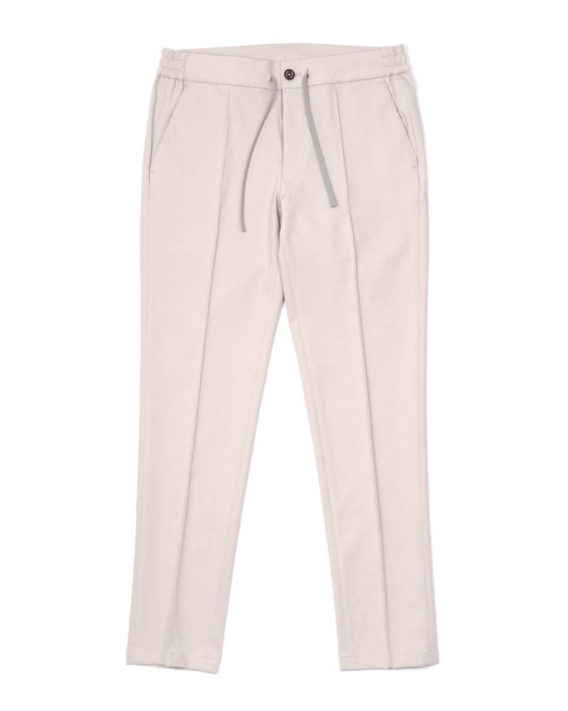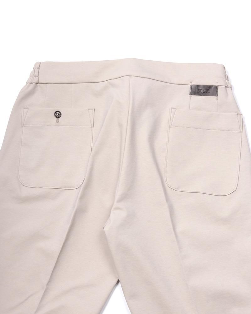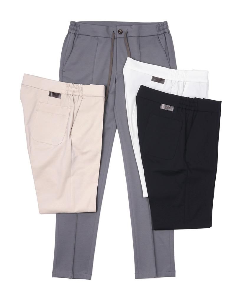 さらにはドローコード仕様でベルトをすることなく着用でき、履き心地はスポーツウェアのそのもの。 一方でフロントタックを施しセンターラインが消えないように工夫されており、ドレスの表情が保たれるようになっています。
