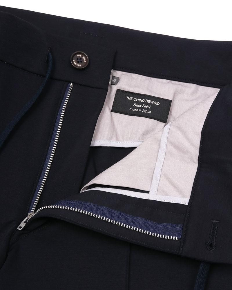 基本ディティールである、ウエスト両サイドに伸縮性のあるゴムが配置され、食前食後の腹囲の変化にも十分対応します。