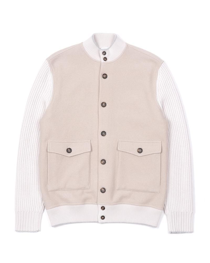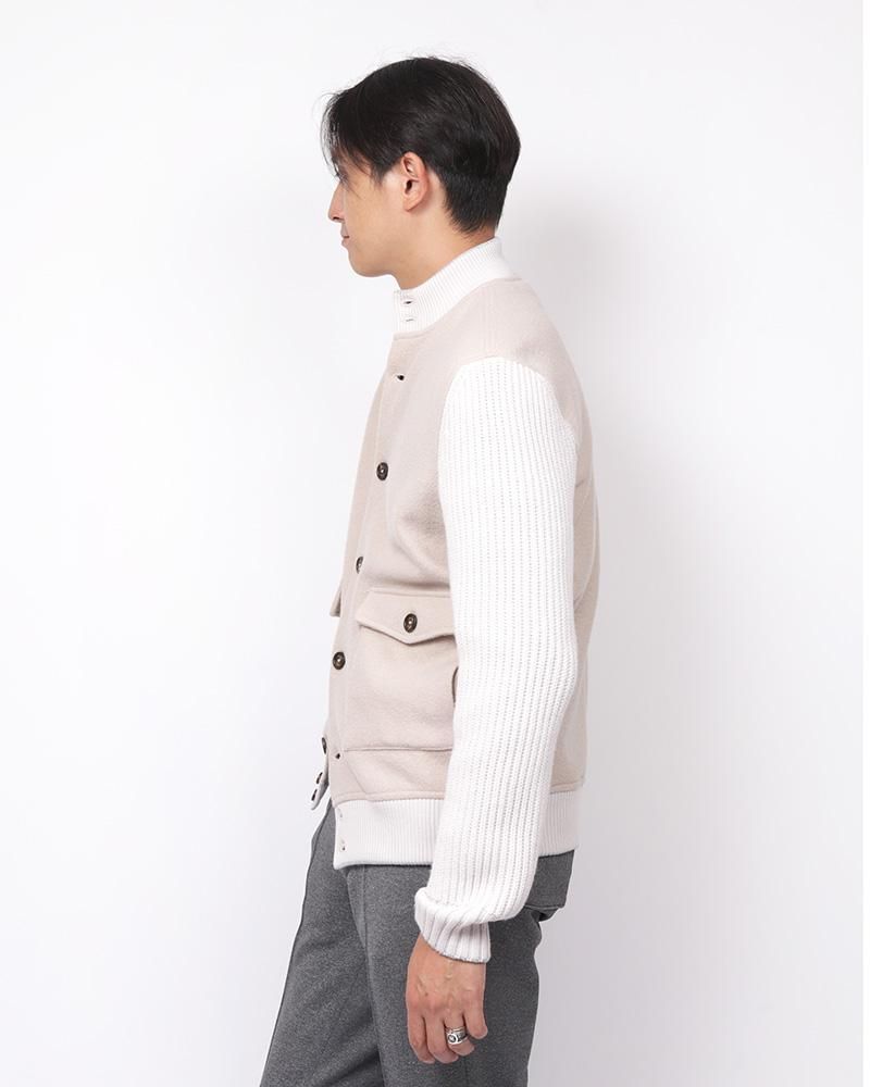ボディ部分はフリース素材、袖は畝の太いニット素材となっています。