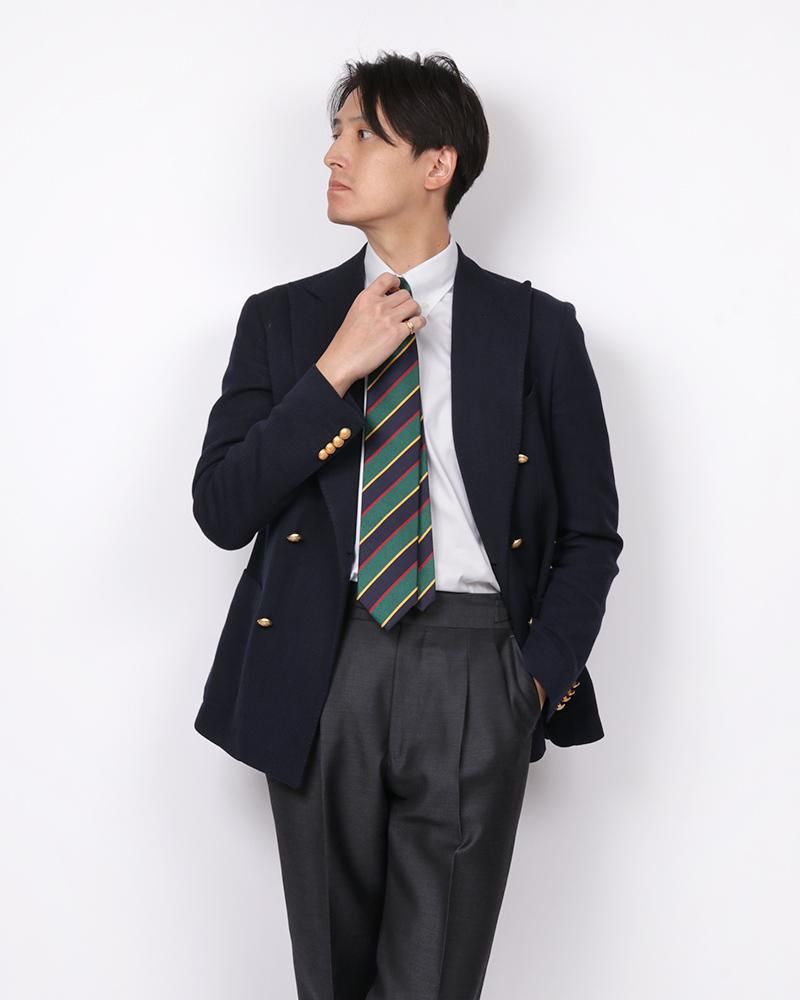 幅は定番的な8cm。 あらゆるジャケットと問題なく合わせられるスタンダードな幅となっています。