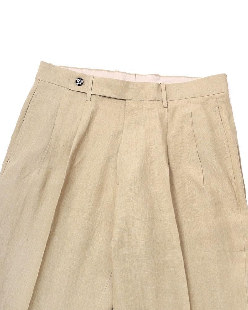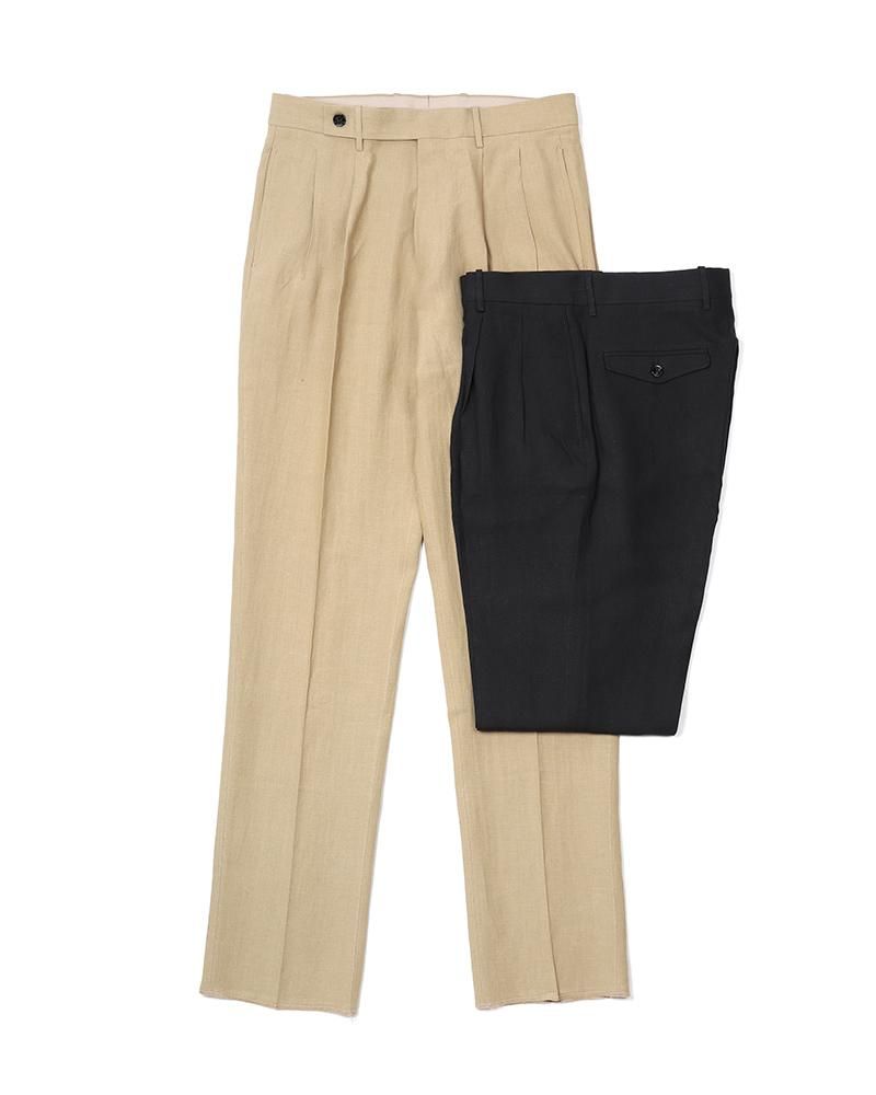 その時はアースカラーのカントリーチェック柄やヘリンボーンと、季節感のある生地を選んでいましたが、この春夏も同じくリネン100%の生地をチョイスして、季節感のあるパンツにしています。