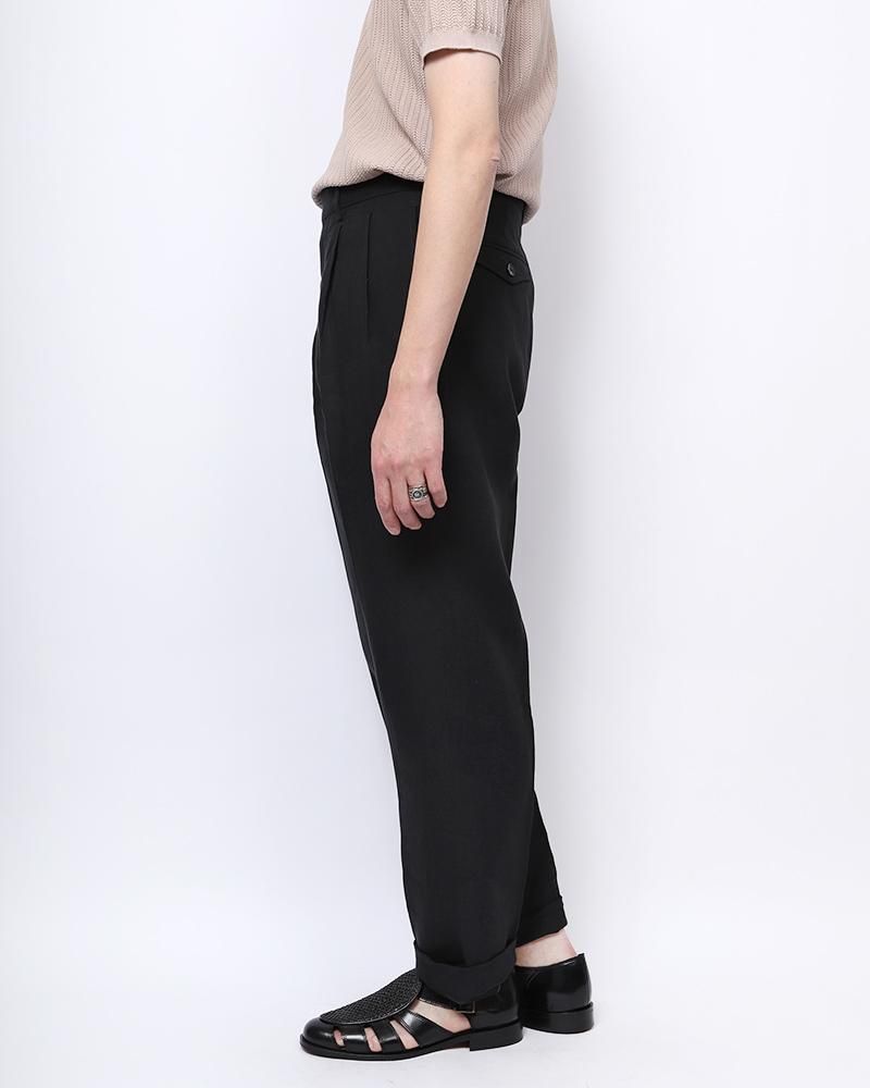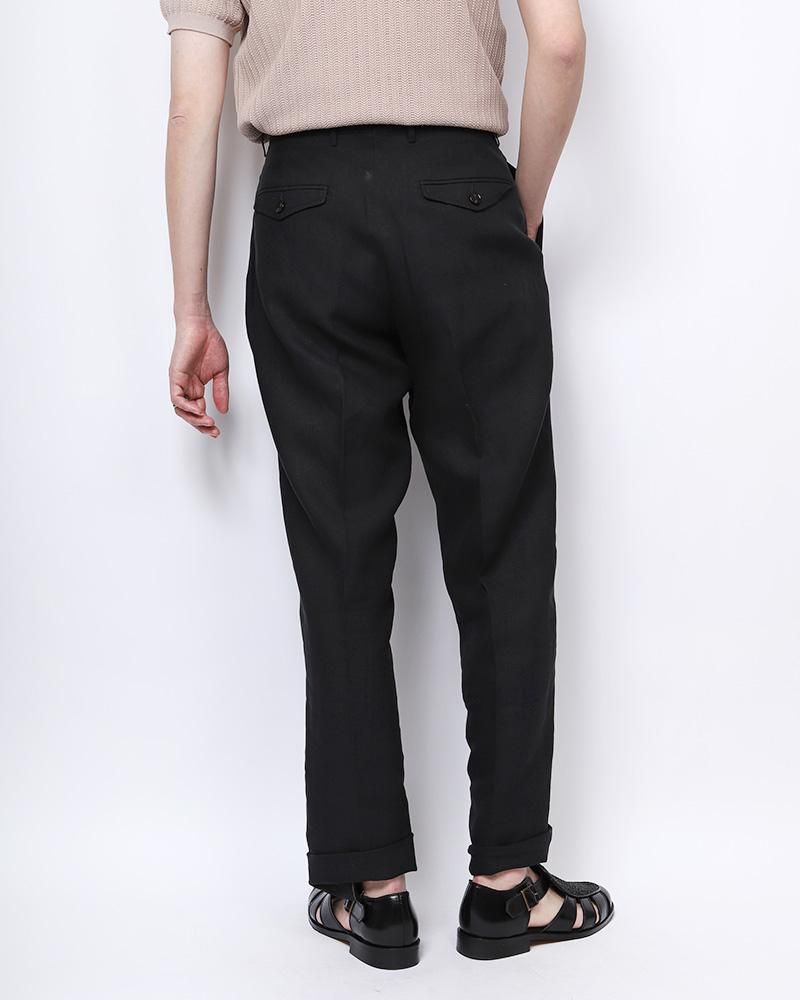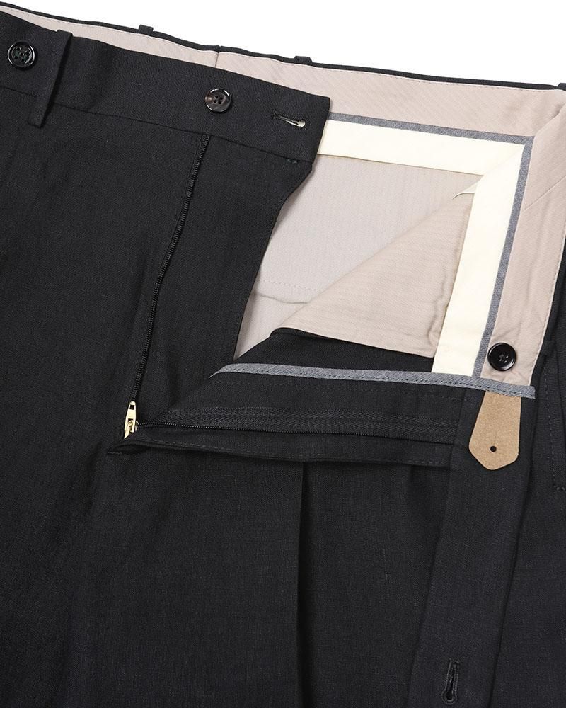 ウエストには2アウトタックが施されフロントの持ち出しも長めの、クラシカルなディティールが特徴的。