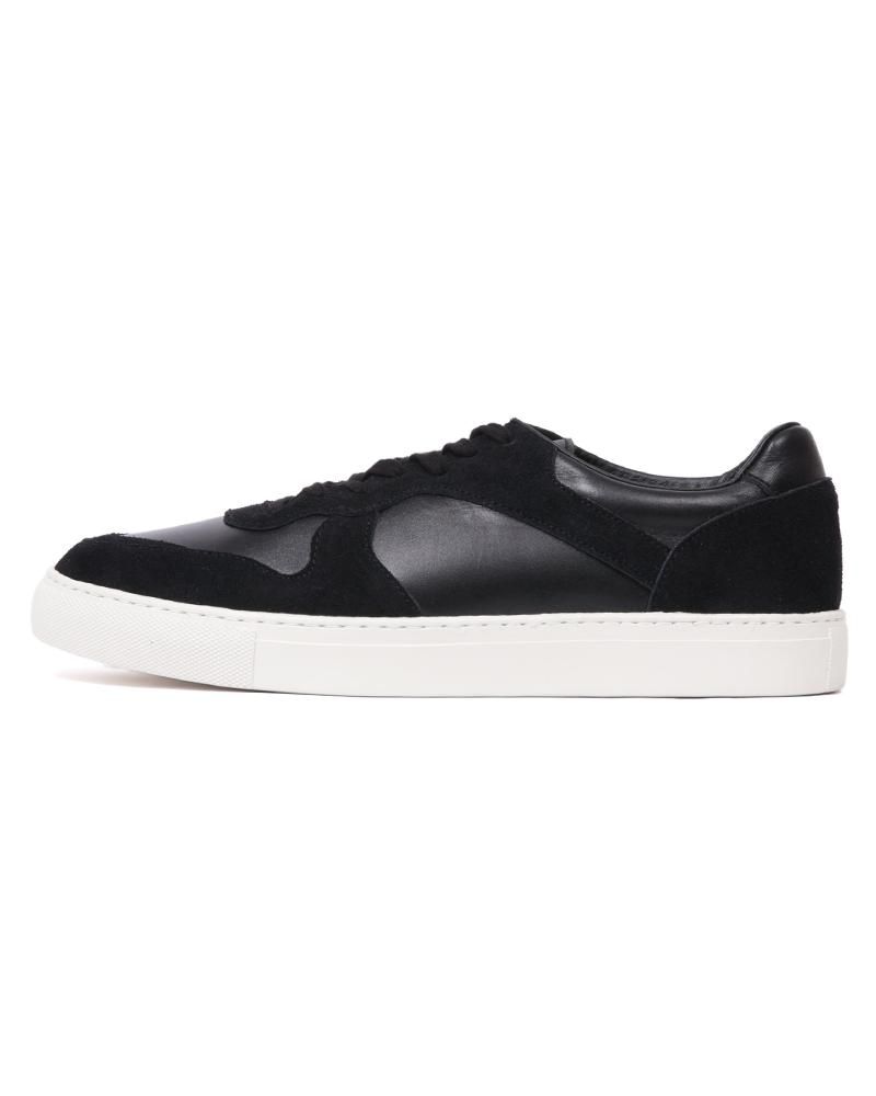 アッパーはスムースレザーとスエードがコンビで配置されており、色はバラつかずともコントラストの効いたルックスになっています。 デザイン的にもシルエット的にもボリュームがあり、少しリラックスしたボトムスとも相性が優れています。