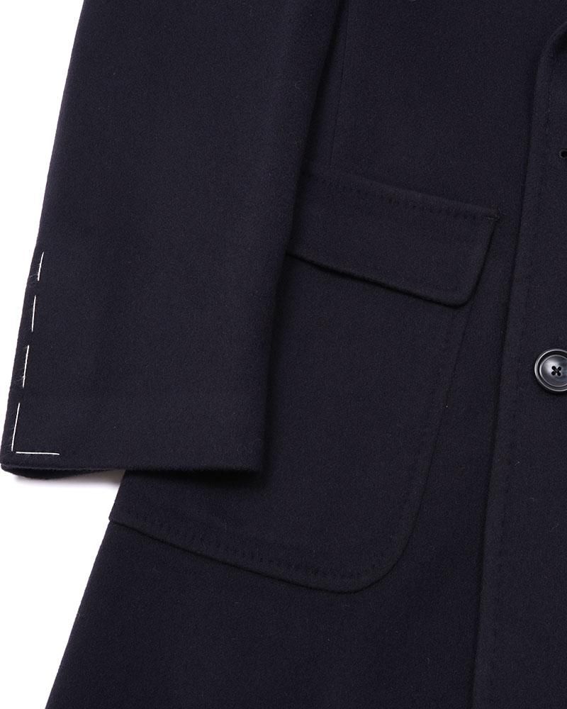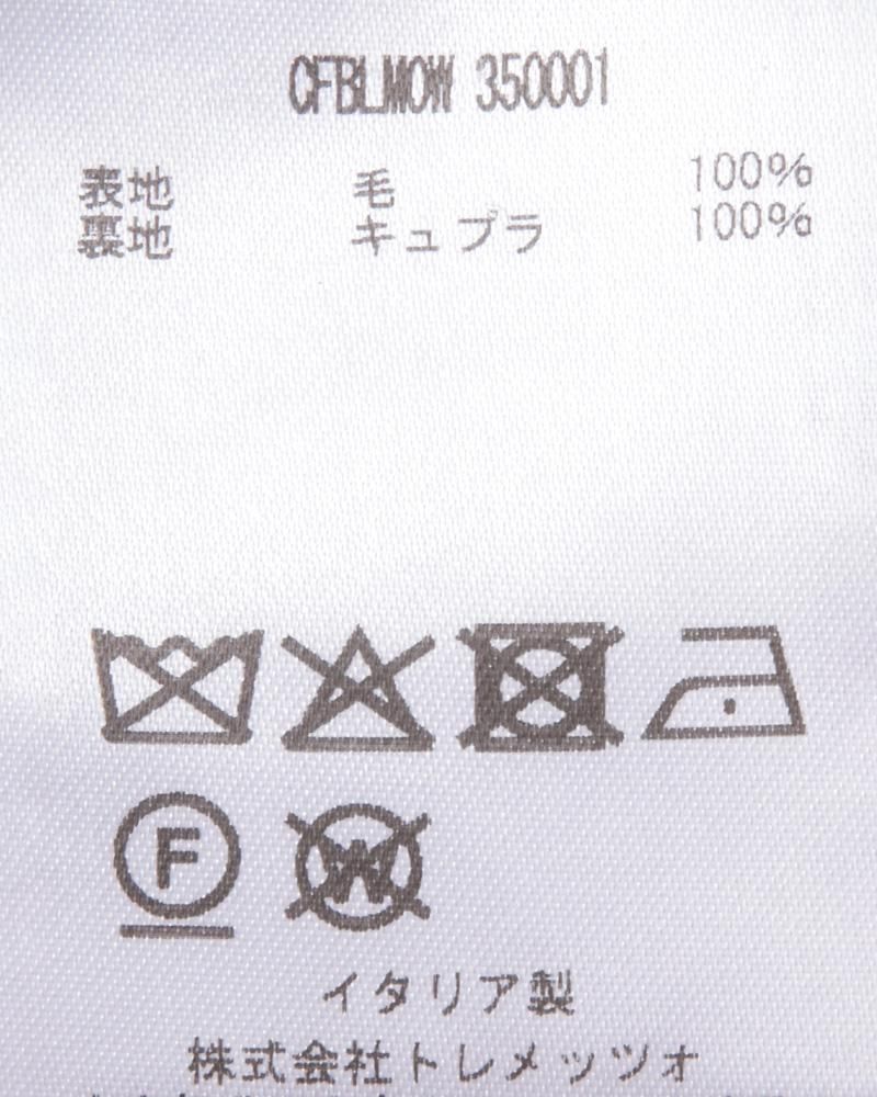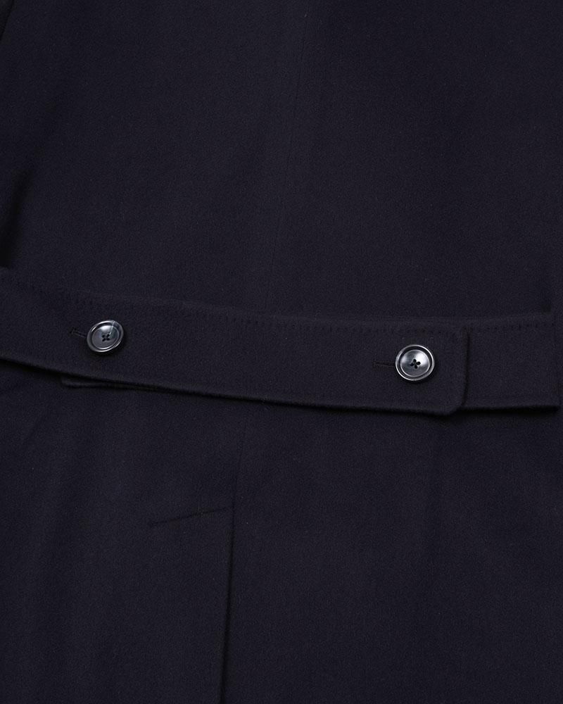 フラップ付のパッチポケット、バックベルトなど控えめなデザインですが、素材とカッティングの妙技で着用者を美しいシルエットで包む、これぞタリアトーレと言える一着に仕上がっています。