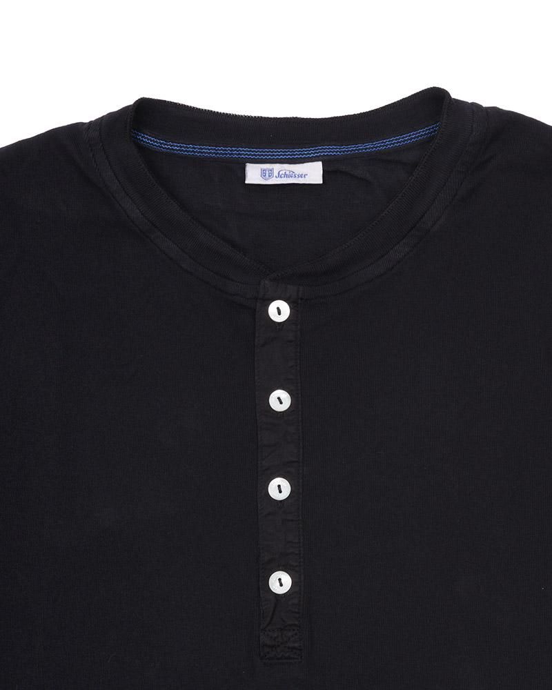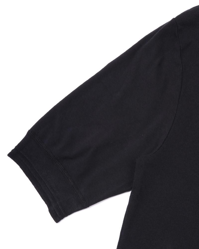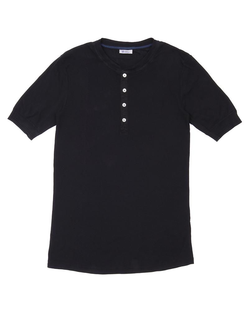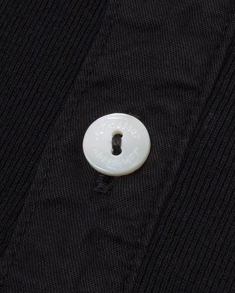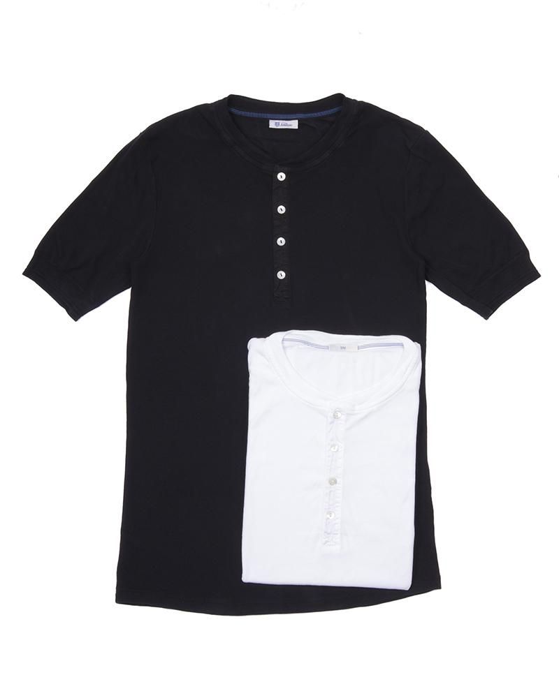 こちらは定番プロダクトであるヘンリーネック、KARL-HEINZ(カールハインツ)の半袖モデル。 ボディは伸縮性に優れ肌あたりの良いマココットン100%のカットソー生地で、袖はリブ編みに切り替わり腕へのフィット感に優れています。 フロントボタンは美しい貝ボタンを採用。 前たて部分にはアクセントとなるブルーのストライプ柄の生地があてられています。
