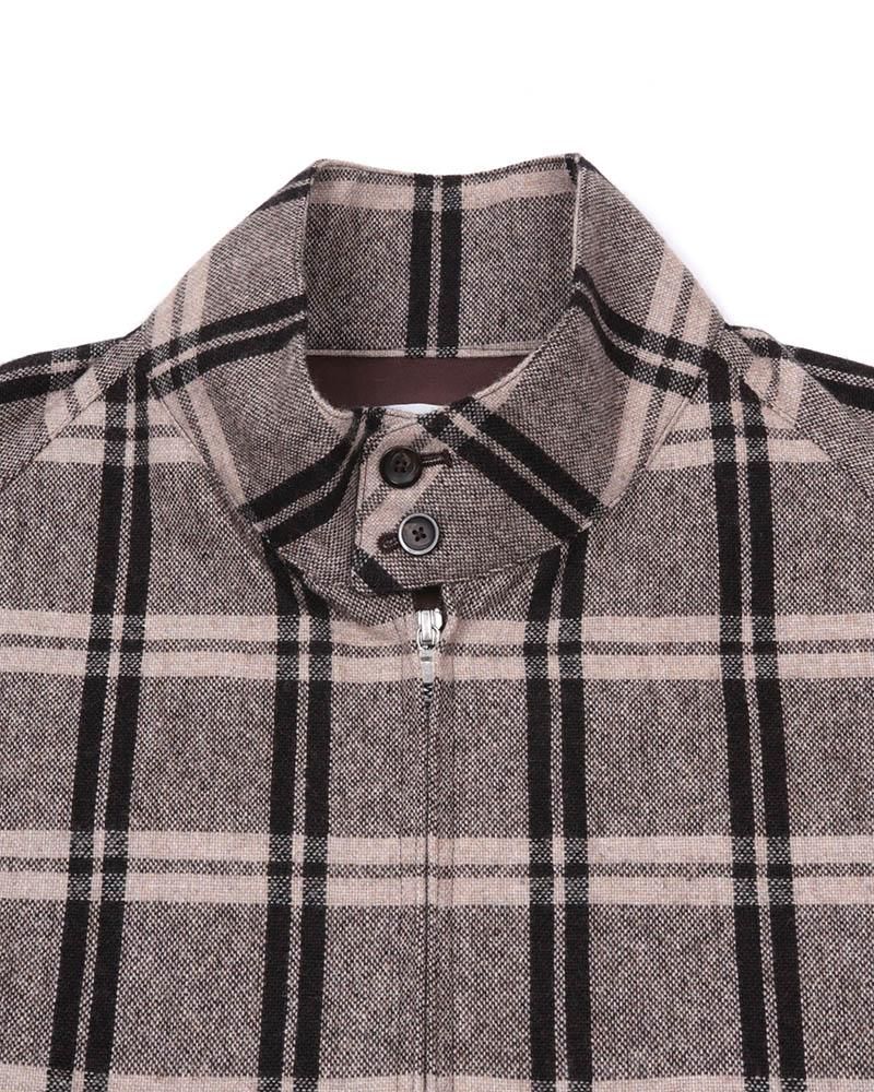 素材はウールをベースに様々な糸を混紡したチェック柄ライトホームスパン。