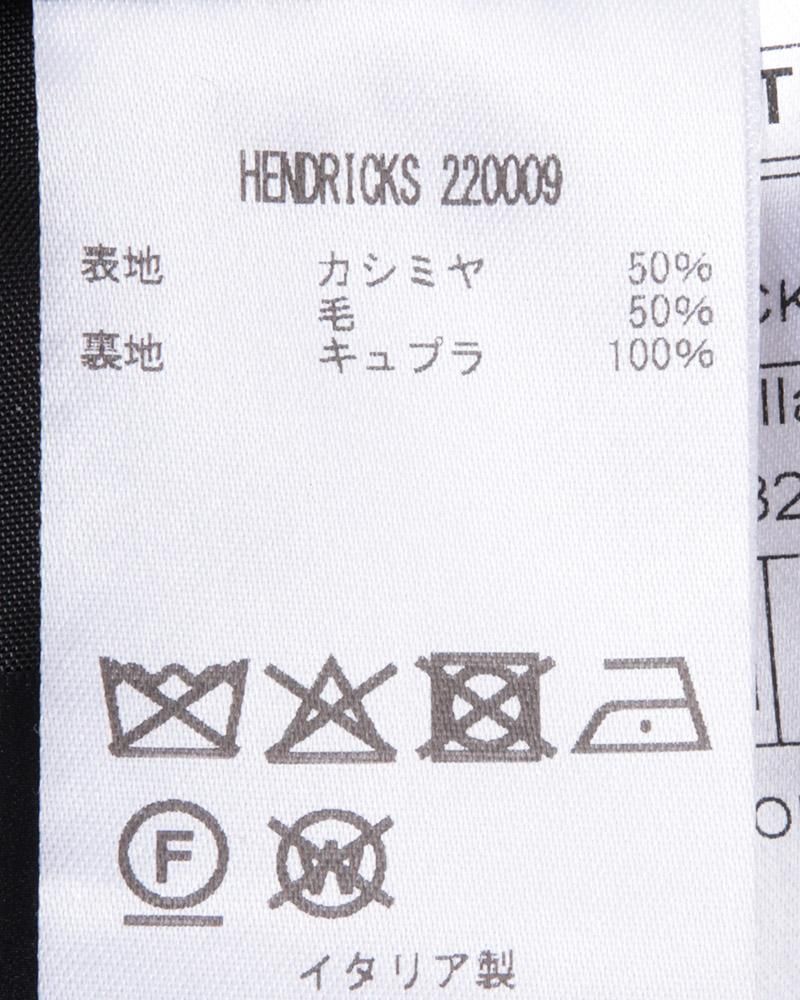 厚手のジャケット、もしくは薄手のコートといった中肉の素材感は、ラップコート型のHENDRICKSと抜群に相性の良い素材です。