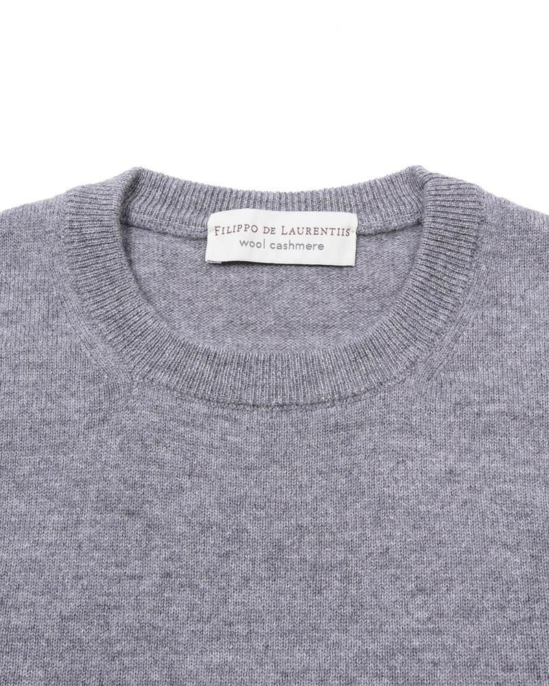 こちらはウール90%カシミア10%混紡の12ゲージニットを使用したクルーネックセーターです。