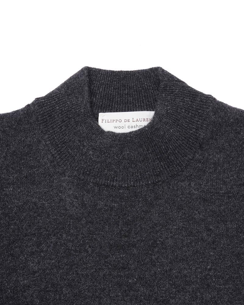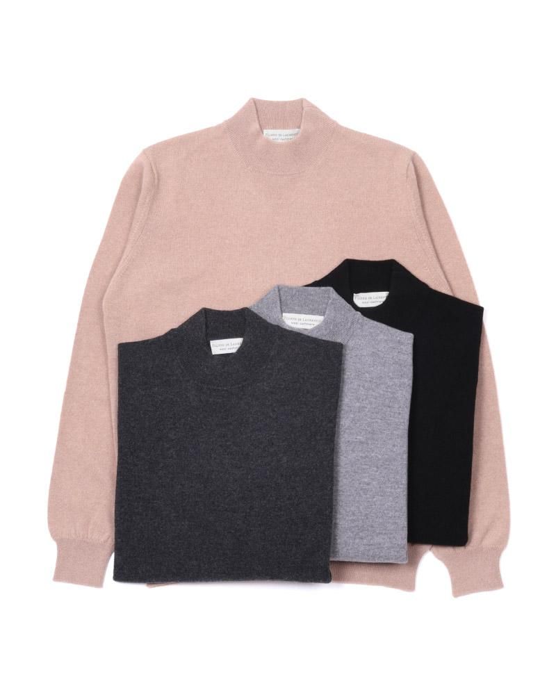 こちらはウール90%カシミア10%混紡の12ゲージニットを使用したモックネックセーターです。