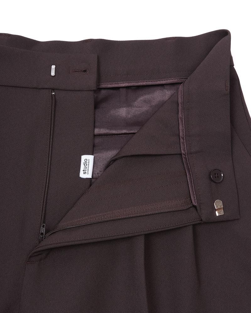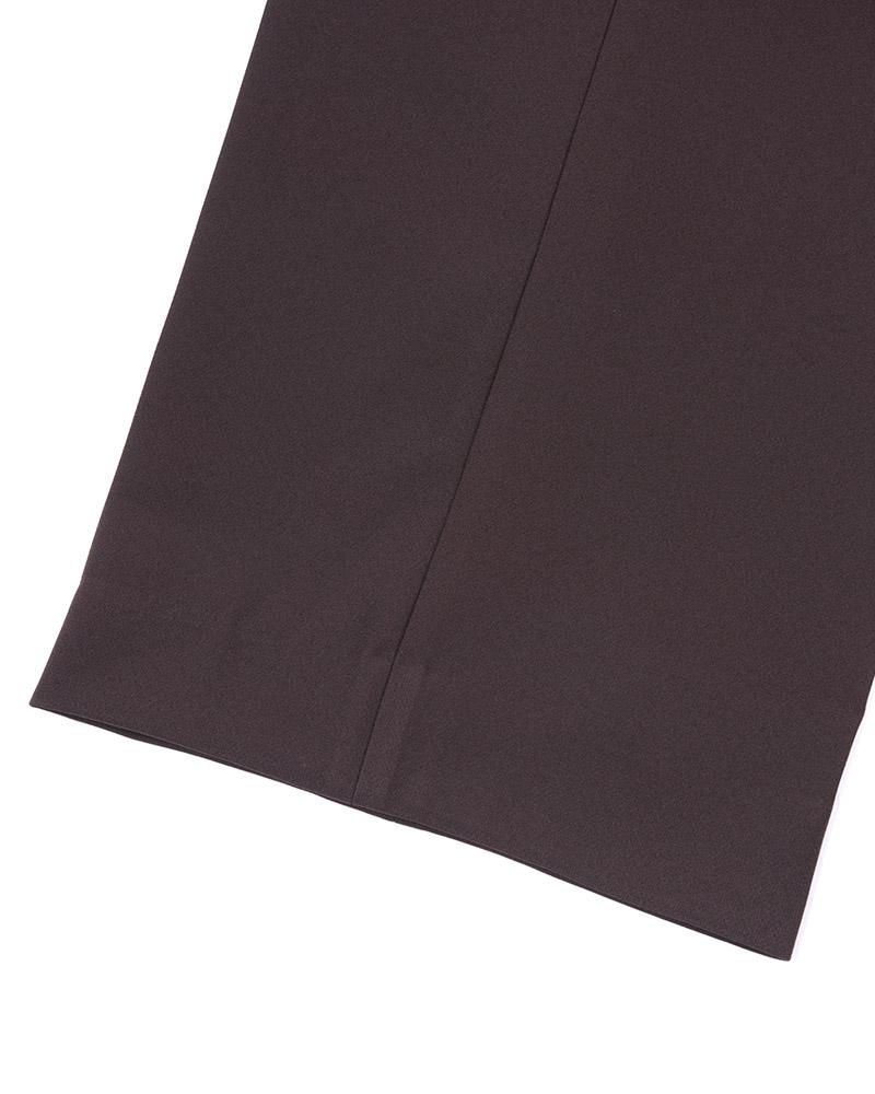 ストンとしたストレートシルエットですが、ウエストやヒップはコンパクトめに作られており、ビシッとした腰回りのフィッティングから違和感なくワイドストレートへと変化するパターンになっています。