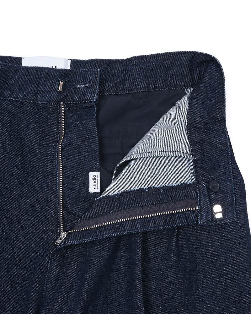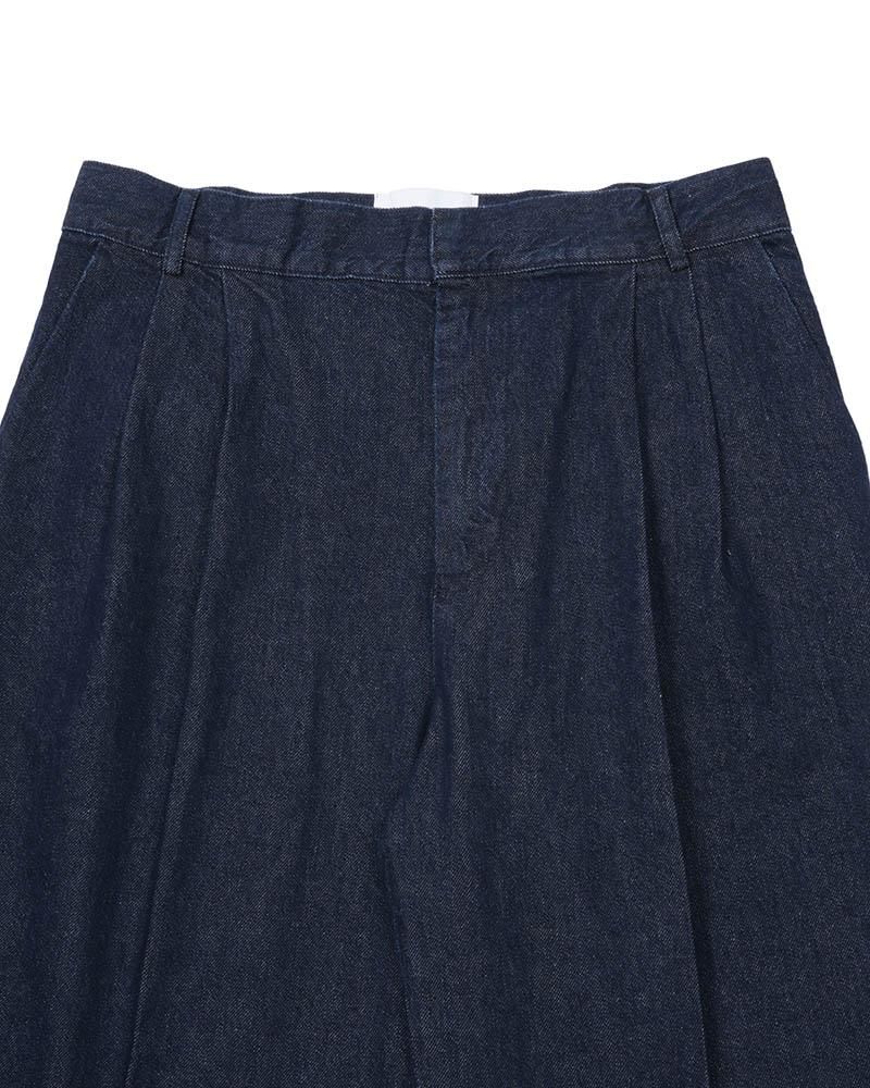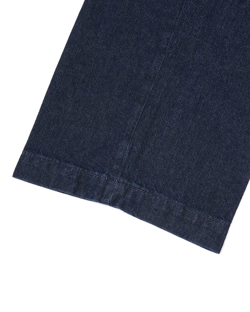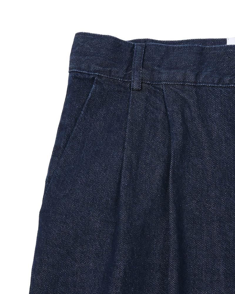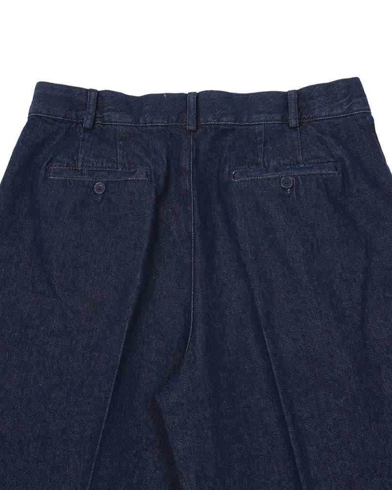 ストンとしたストレートシルエットですが、ウエストやヒップはコンパクトめに作られており、ビシッとした腰回りのフィッティングから違和感なくワイドストレートへと変化するパターンになっています。