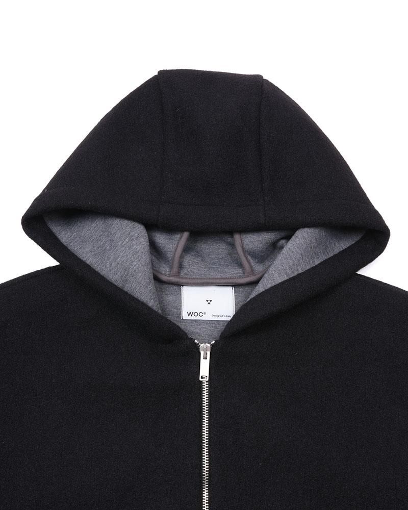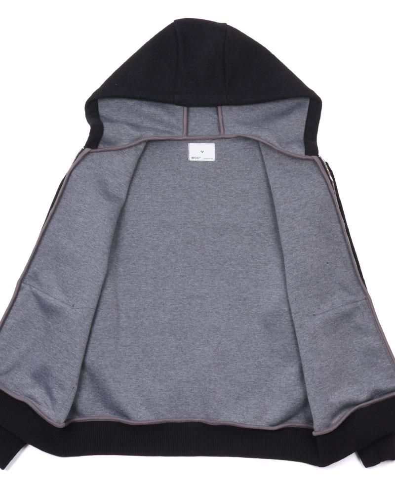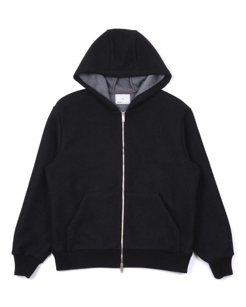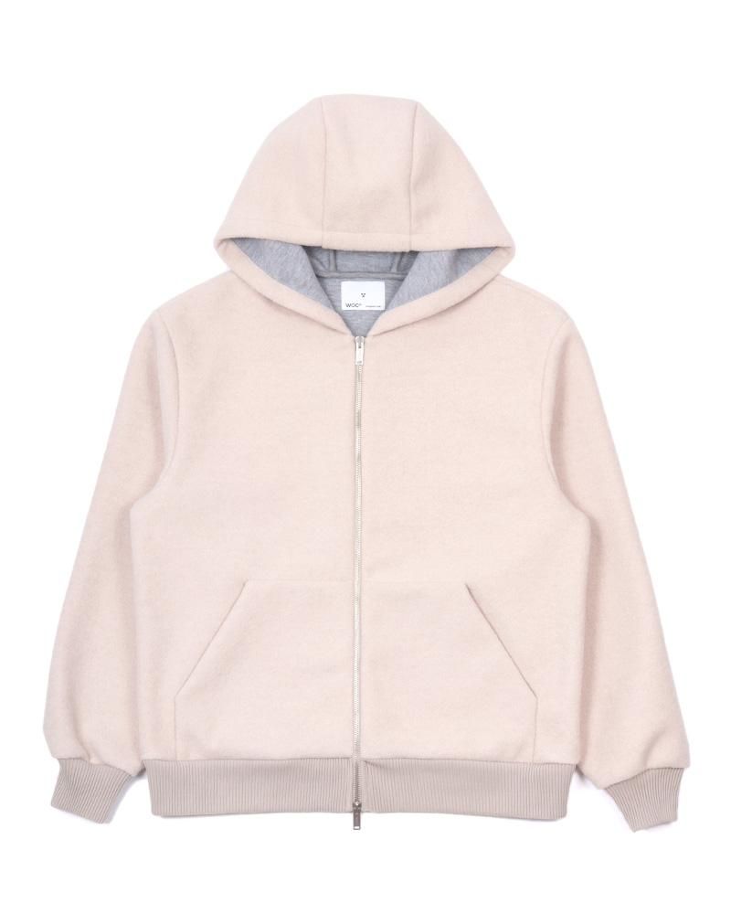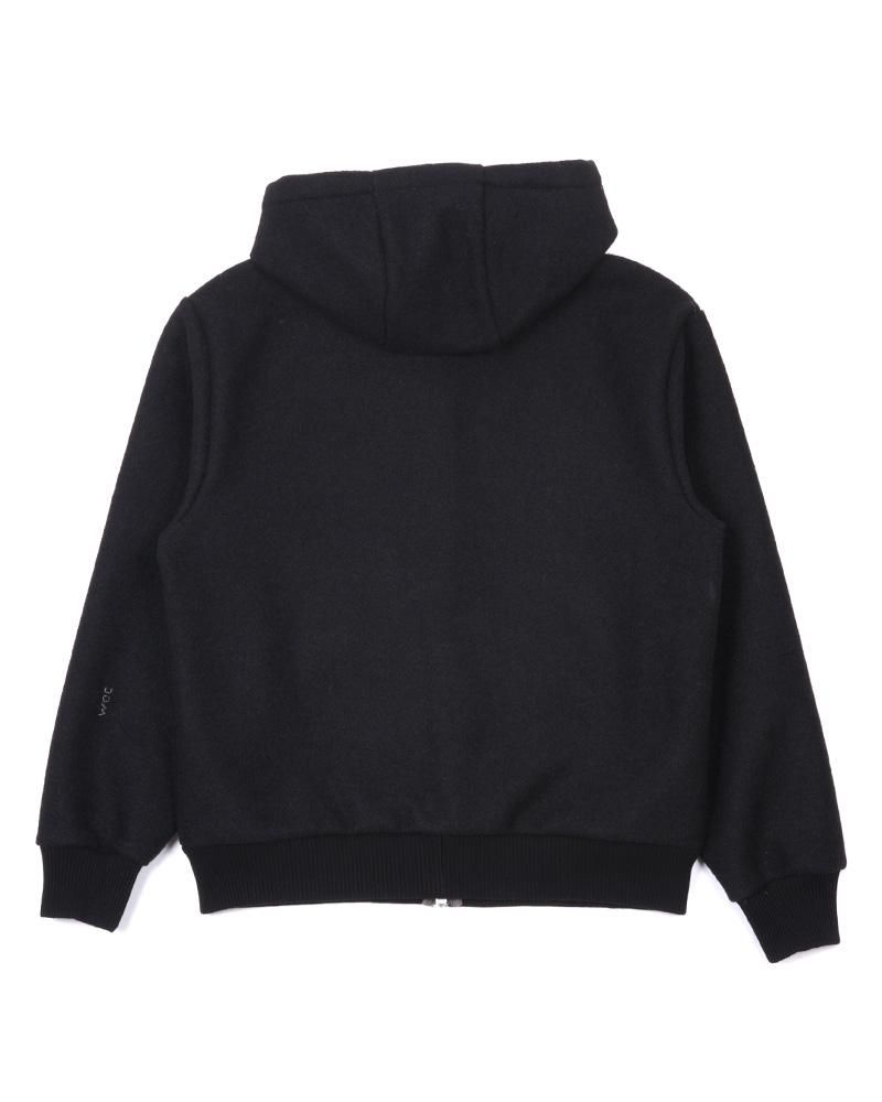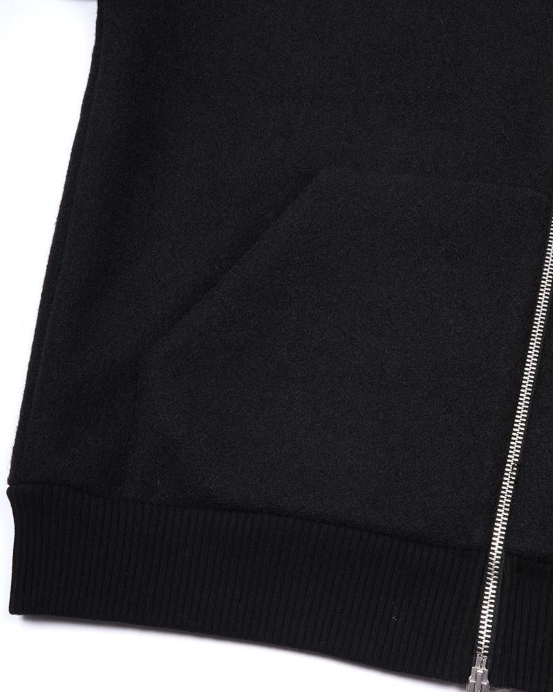 表面にライトメルトン、裏側にジャージをボンディングした素材を使用しており、アウターですがスウェットパーカーを羽織るような軽い着心地が特徴です。