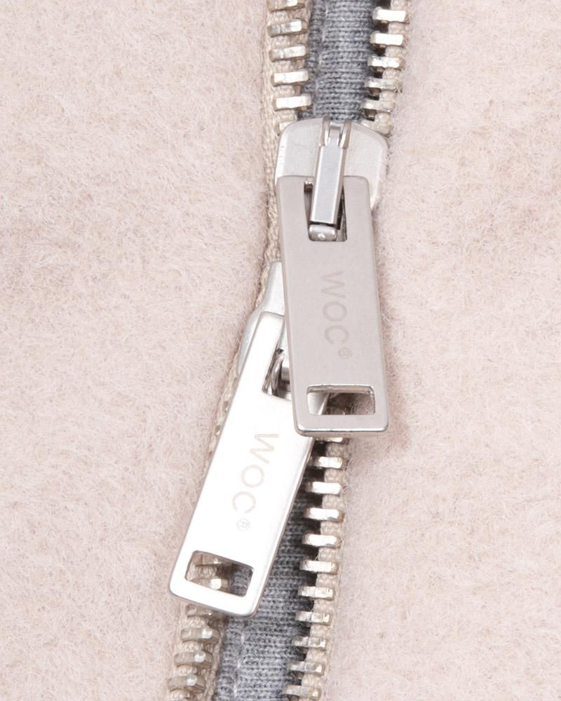 フロントはブランドネーム入りのオリジナルWファスナー。