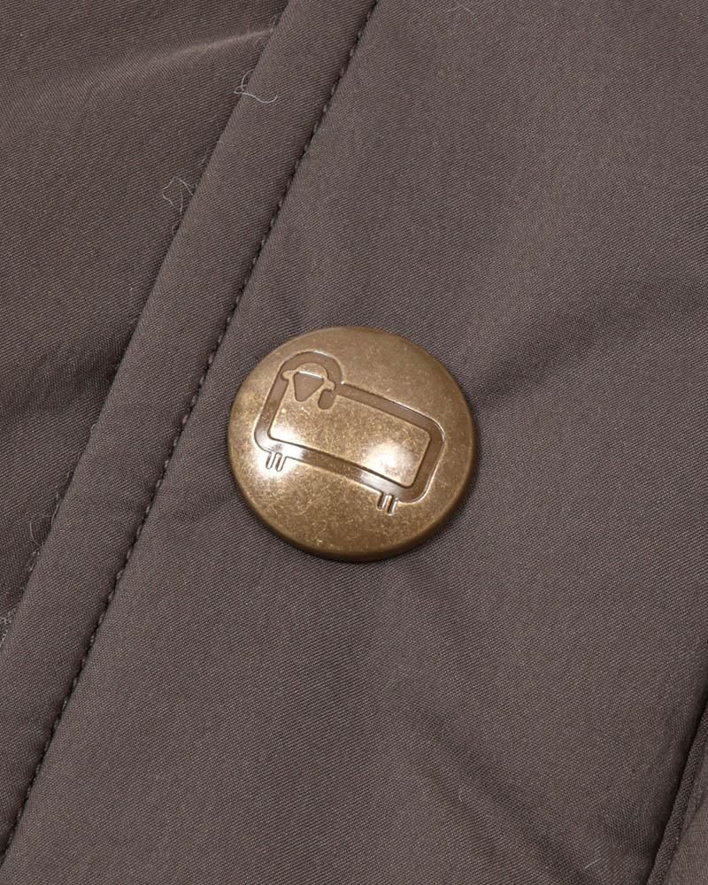 フロントには大きな羊型スナップボタンや刻印入りのPUレザーを配置することで、アウトドアブランドらしいディテールをプラス。
