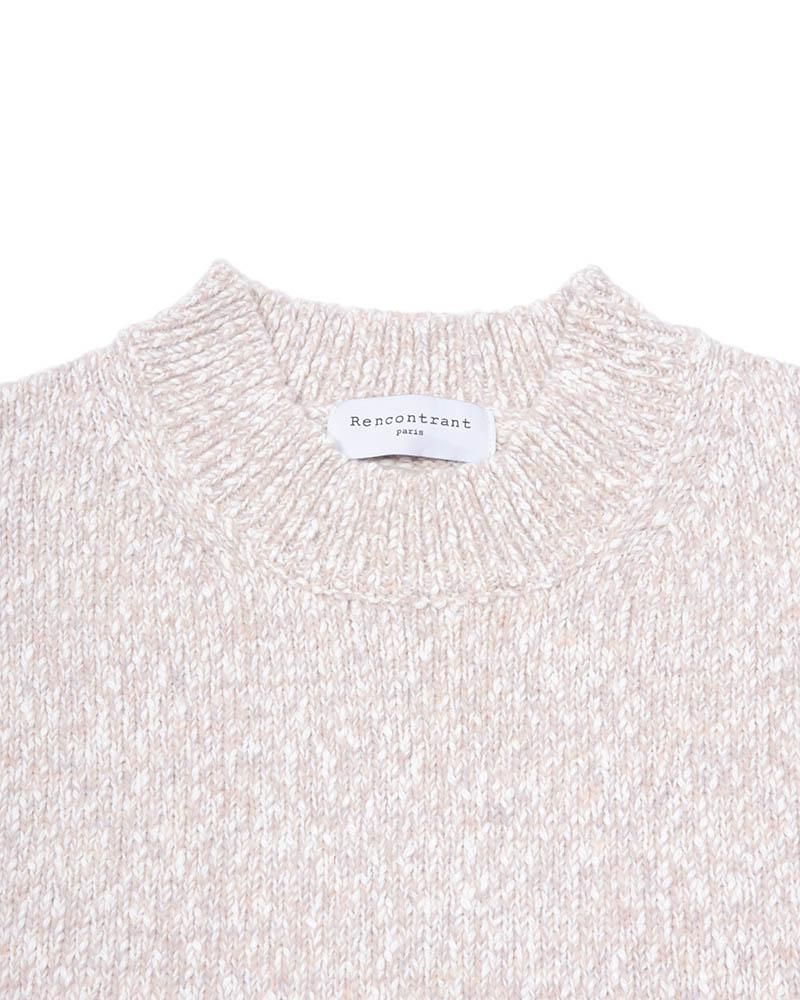 素材は異なる色のコットンとウールにブレンドしたメランジのミドルゲージニット。